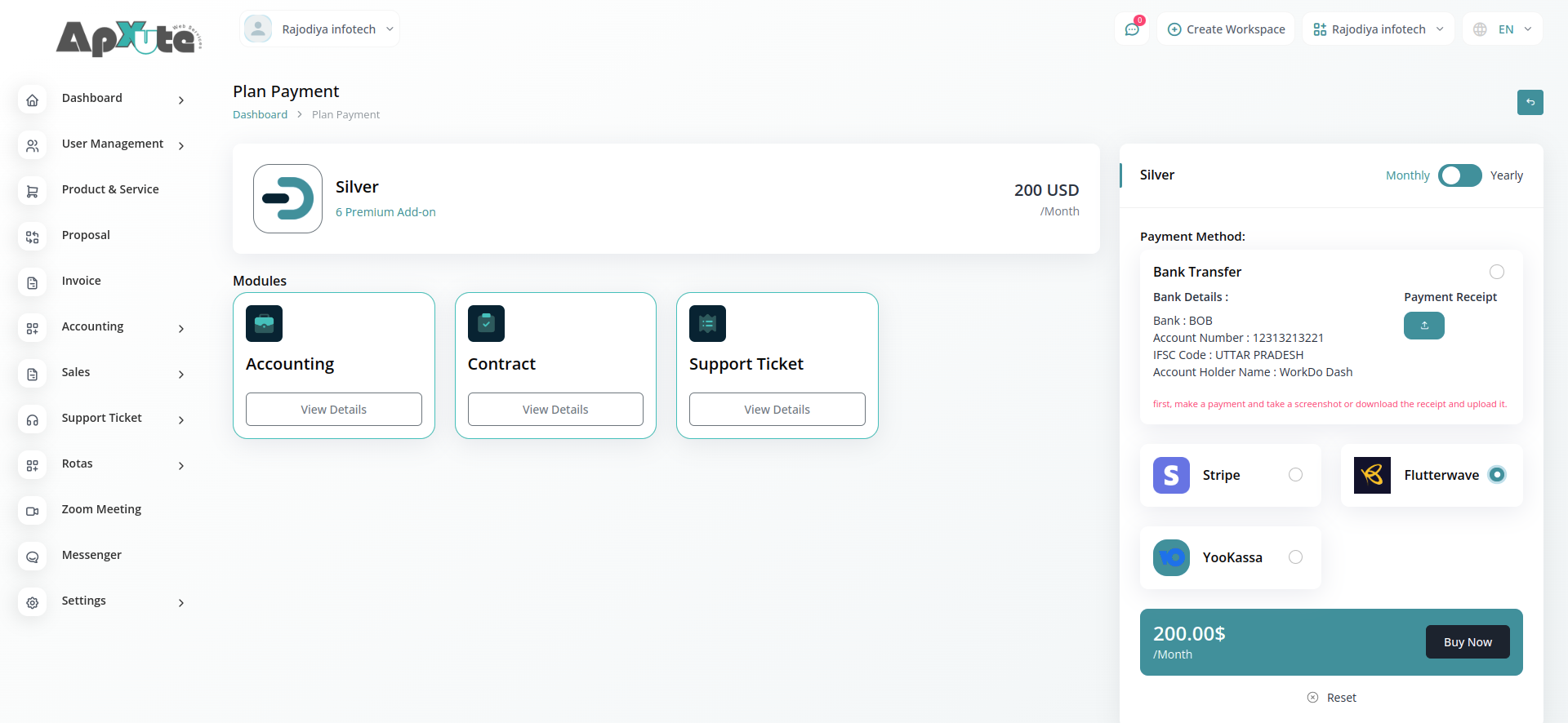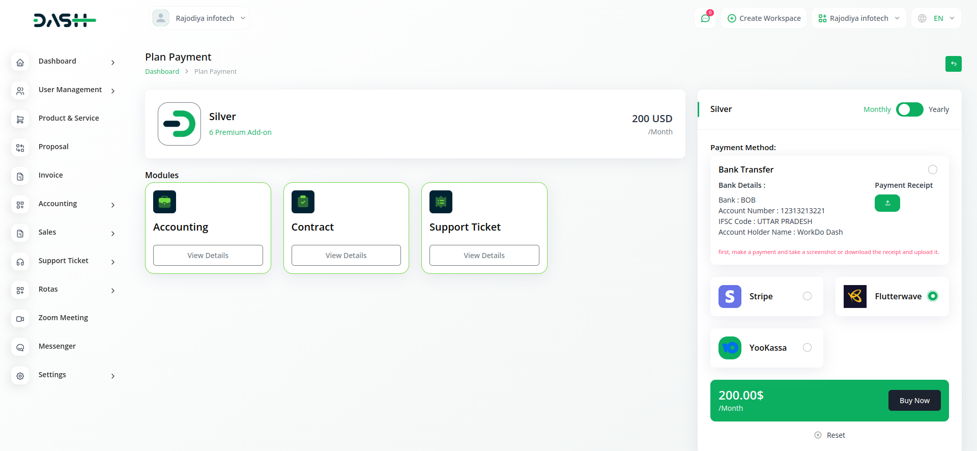 Discover a world of simplicity and convenience with our seamless integration of FlutterWave, designed to enhance the plan purchase process for your company. Experience unparalleled ease as your company explores, selects, and procures plans from the plan section.