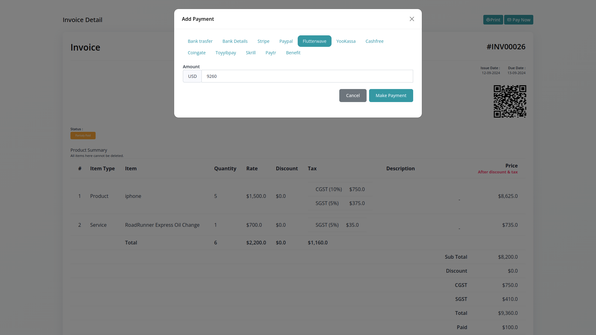 Welcome to a world of frictionless financial interactions. Our integrated FlutterWave solution redefines the way your clients settle invoices and manage retainers, ensuring a seamless and hassle-free payment experience. Elevate your invoicing process with FlutterWave. Clients can swiftly settle invoices with just a few clicks, while our robust security measures ensure their transactions remain safeguarded.