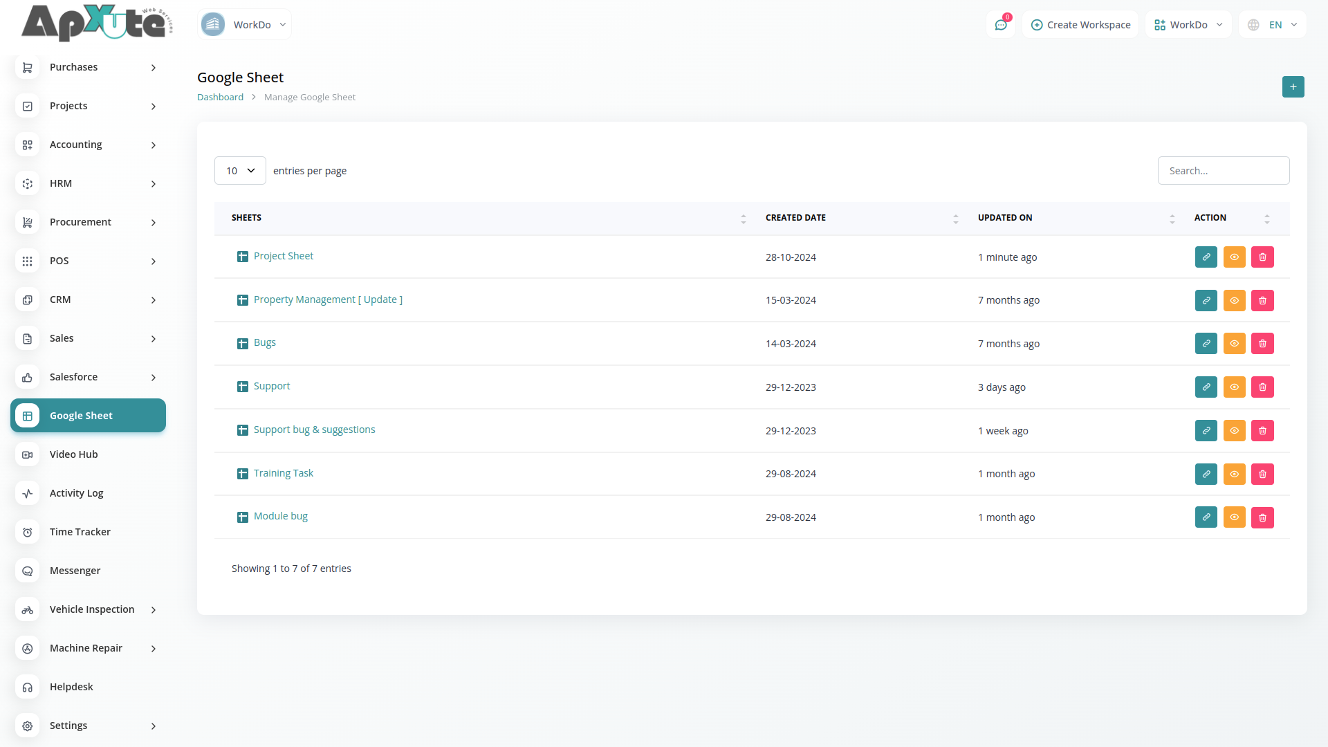 You can easily access, view, edit and delete sheets from google drive with Google Sheet without access google drive in apxute. you can Quickly organize and analyze data by sorting and filtering columns.