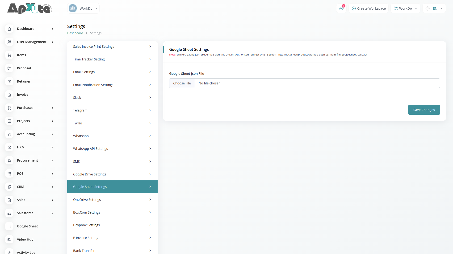 1. Upload your credentials json file in (System Settings->Google Sheet Settings).