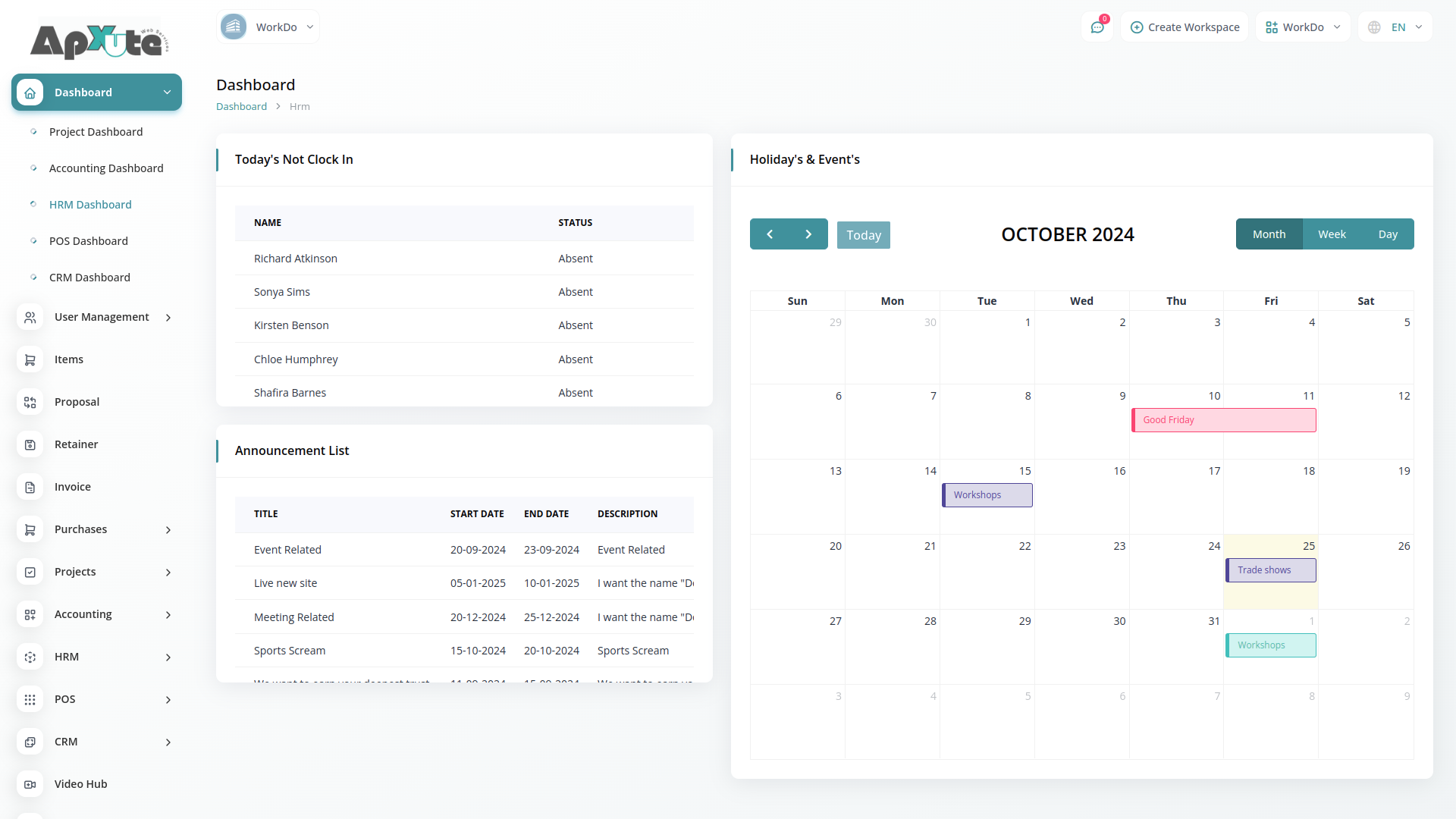 Your employees are your business’s greatest assets. Whether you employ 5, 50, or 500 people, with ApXute, you can manage all employee matters. From hiring to performance and salaries - everything under one roof. Customizable, versatile, and easy-to-use complete HRM system.