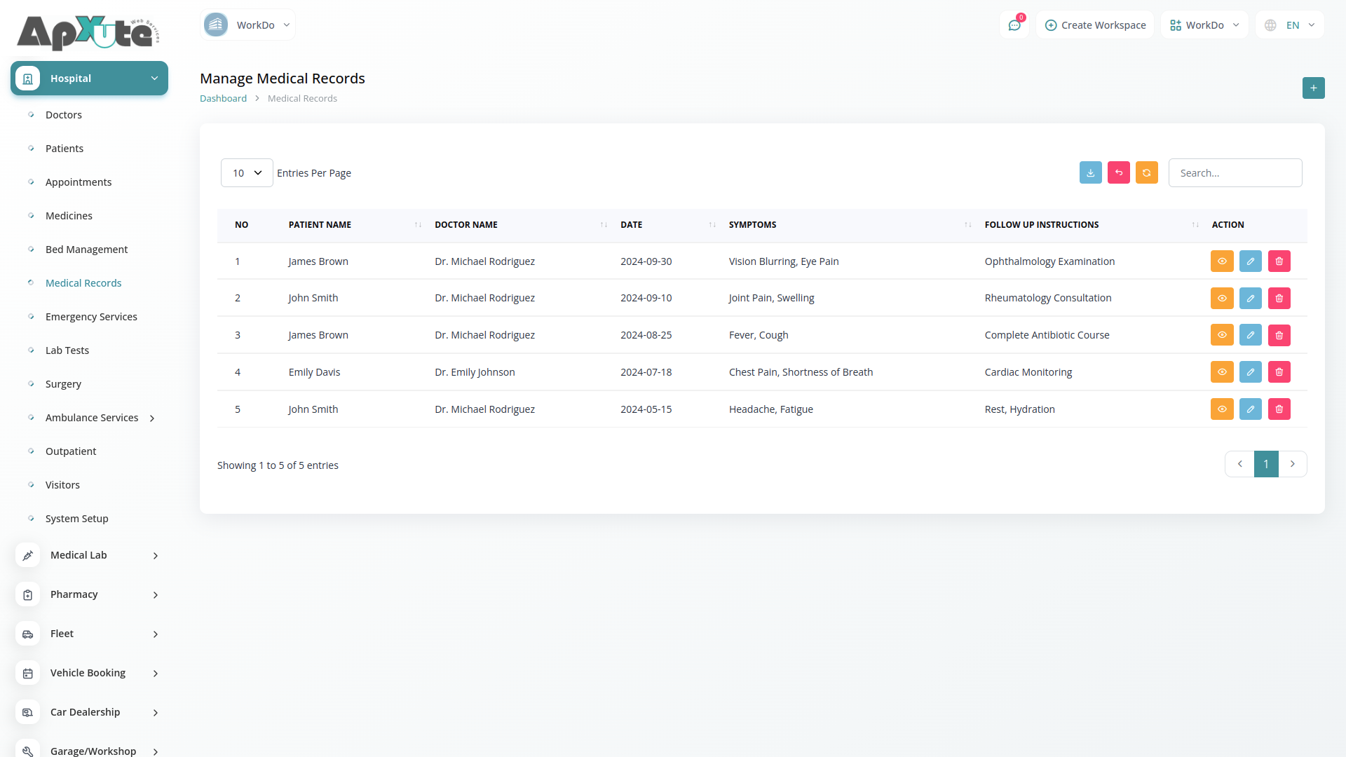 Our user-friendly Hospital management system simplifies hospital management. It features a doctor manage, patient manage, Appointment manage, Medicine manage, Bed manage, Medical Record and System Setup for easy form submission.