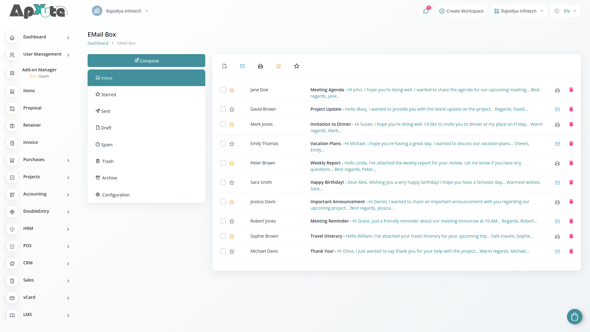 In the EMail Box module, you gain seamless access to your email folders, including Inbox, Drafts, Spam, Sent, Trash, and Archive, all hosted on your SMTP server. This powerful tool empowers users to not only retrieve emails but also interact with them in real-time.