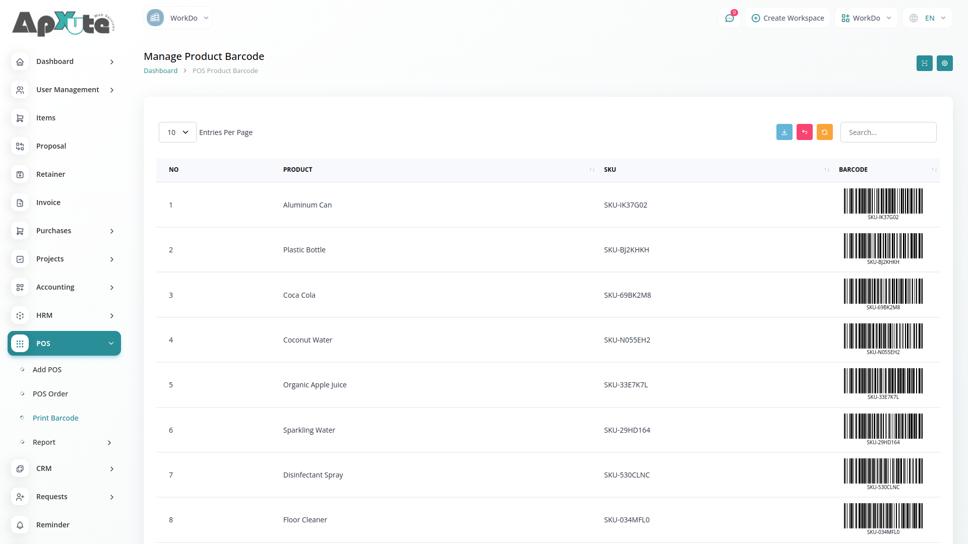 Enhance efficiency in your sales workflow with Apxute SaaS POS is streamlined barcode printing feature. Easily generate barcodes for products and orders by selecting items and specifying quantities. This functionality simplifies inventory management and accelerates checkout processes. Improve operational productivity by swiftly printing as many barcodes as needed, empowering your business to meet customer demands effectively. Experience convenience and flexibility with Apxute SaaS POS is barcode printing capability, tailored to optimize your sales operations.