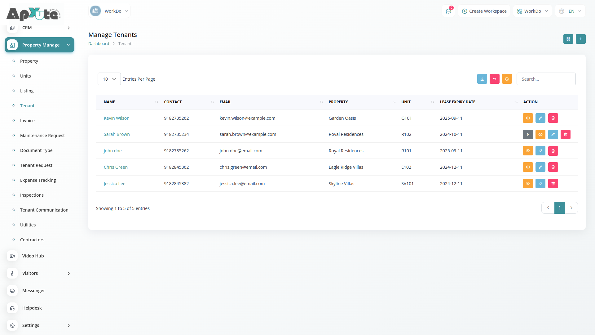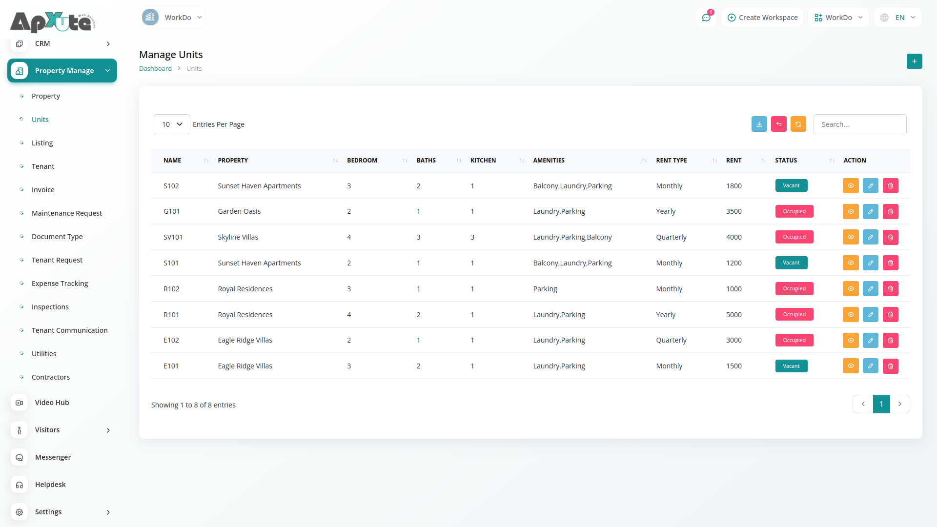 Modify and update your generated property management property units with ease. Add new property, unit and his details without stress. Property Management allows you to create and maintain the data of each tenant. You get access to all essential information through a well-maintained format.