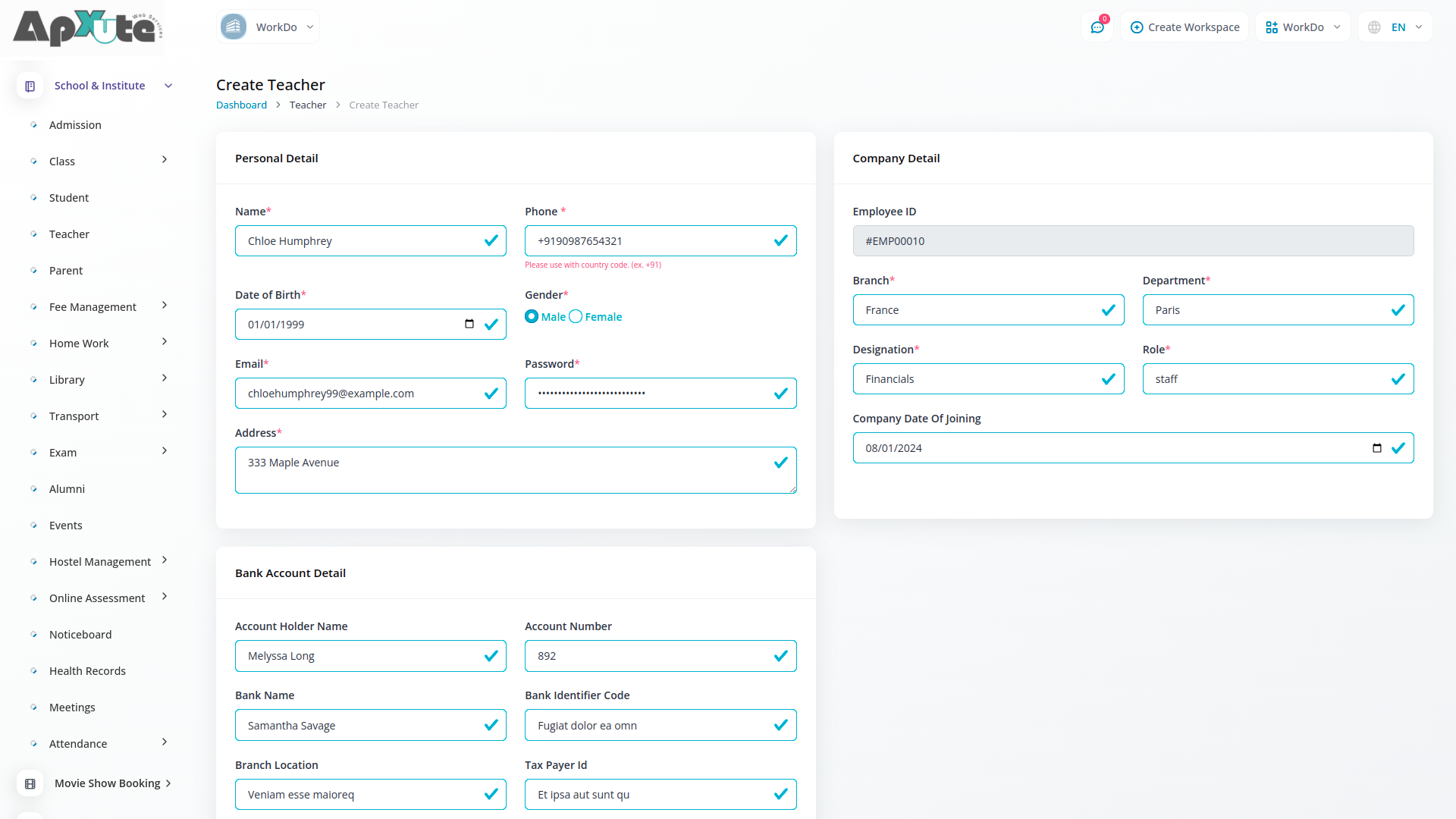 Apxute SaaS introduces a robust School Management Module designed to simplify and enhance the administrative processes within educational institutions. This comprehensive module encompasses various facets, providing a seamless experience for administrators, teachers, students, and parents alike.